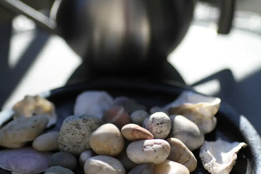 discussing techniques, listening to music, looking at the items they have sitting